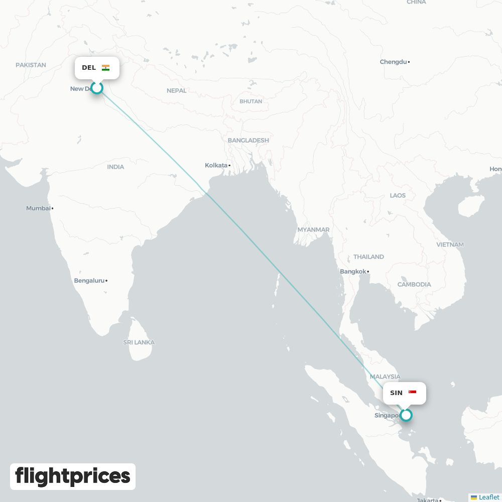 A quick snapshot of New Delhi (DEL) to Singapore (SIN) fares — lowest and typical prices plus the cheapest months and weekdays to fly, the airlines on the route and the usual duration for travel from India to Singapore.