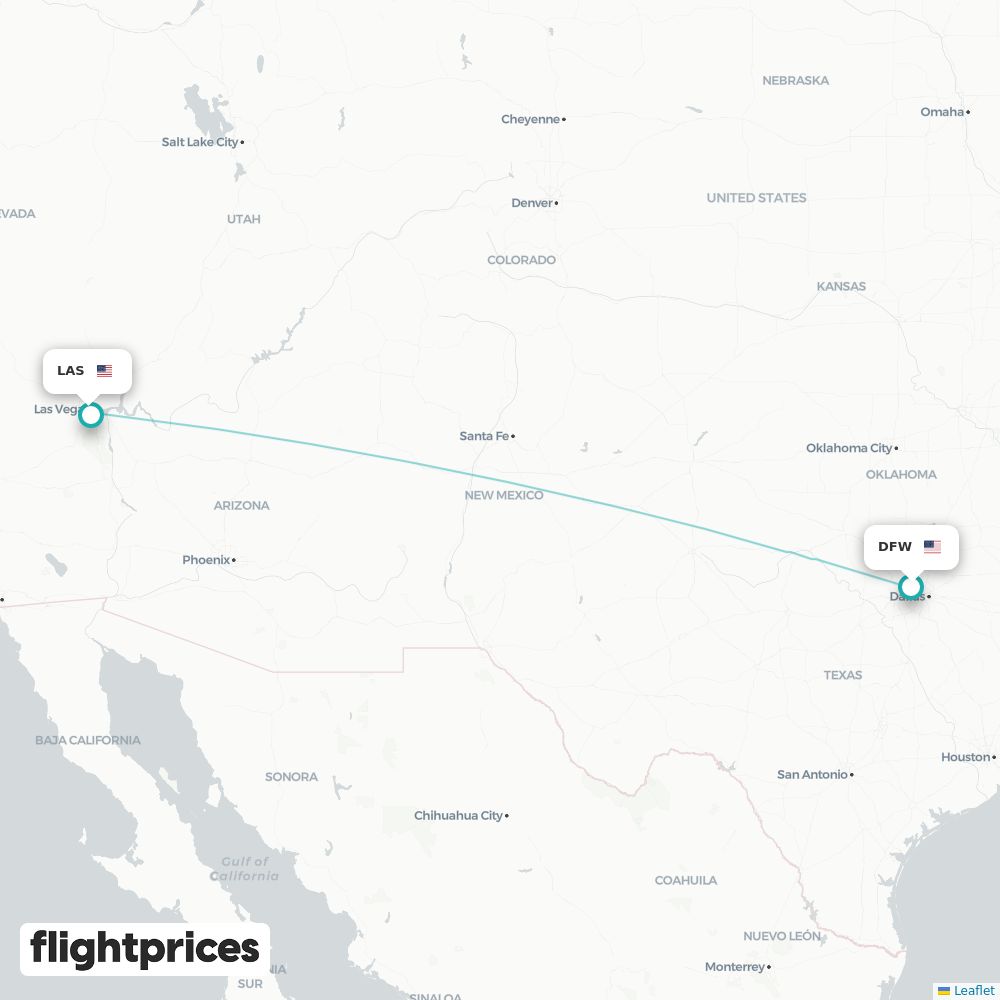 A quick snapshot of Dallas (DFW) to Las Vegas (LAS) fares — lowest and typical prices plus the cheapest months and weekdays to fly, the airlines on the route and the usual duration.