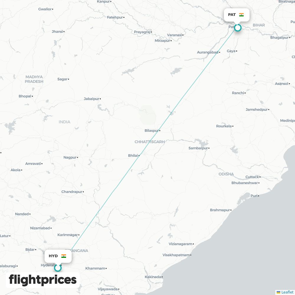 A quick snapshot of Hyderabad (HYD) to Patna (PAT) fares — lowest and typical prices plus the cheapest months and weekdays to fly, the airlines on the route and the usual duration.