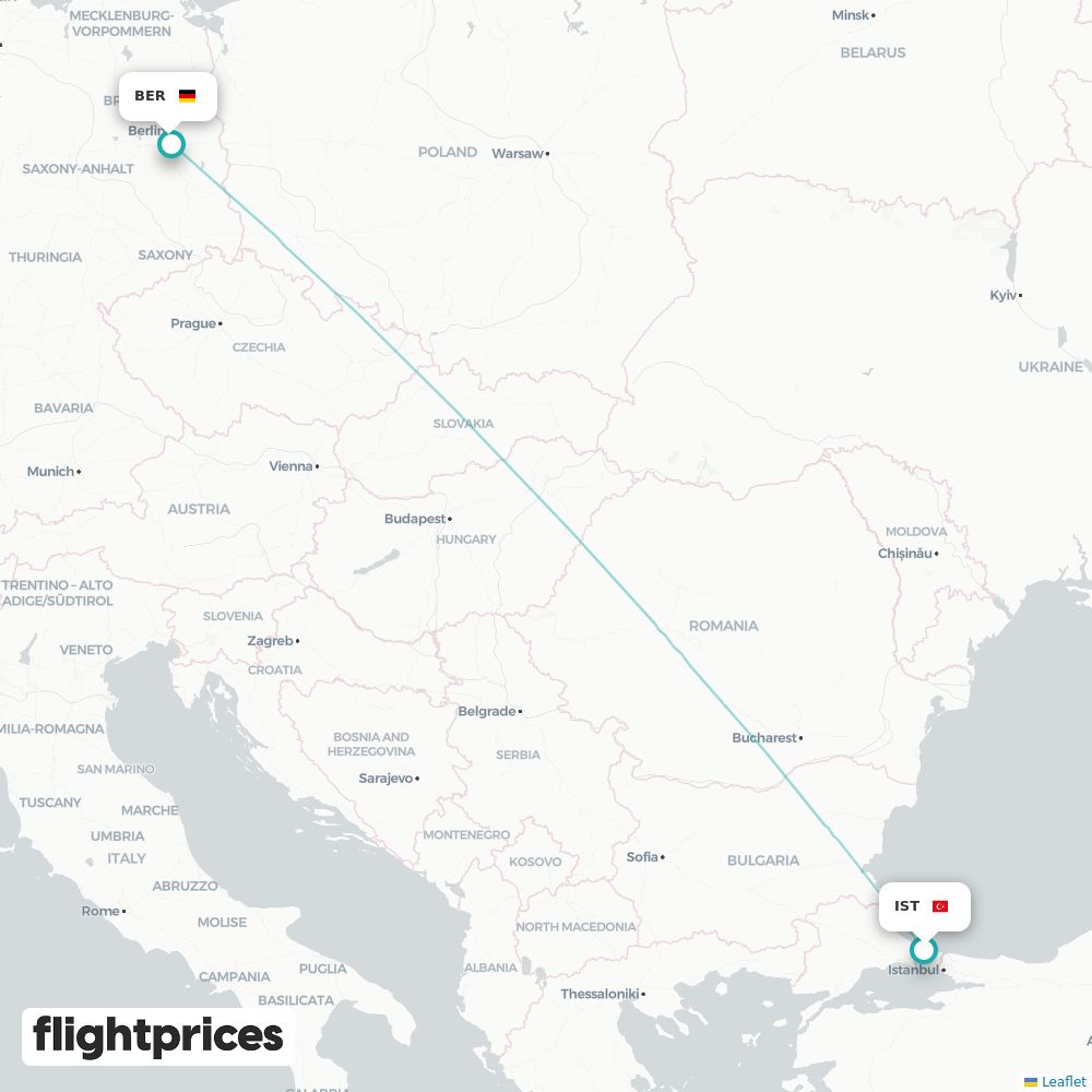 A quick snapshot of Istanbul (IST) to Berlin (BER) fares — lowest and typical prices plus the cheapest months and weekdays to fly, the airlines on the route and the usual duration for travel from Turkey to Germany.