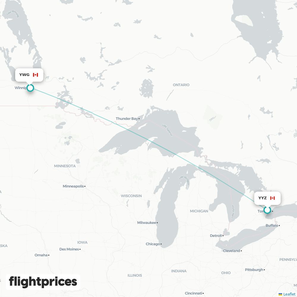 A quick snapshot of Toronto (YYZ) to Winnipeg (YWG) fares — lowest and typical prices plus the cheapest months and weekdays to fly, the airlines on the route and the usual duration.